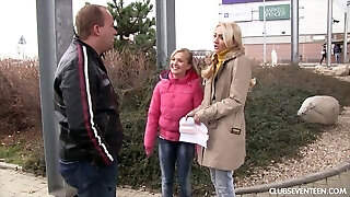 las chicas delgadas hacen gárgaras con entusiasmo y son folladas por dos hombres
