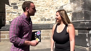 el taxista le ofrece a su pasajero rubio que muestre sus tetas por dinero en efectivo