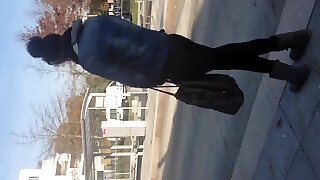 Spanish hottie Carolina Abril is displaying her bumpers in the street