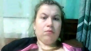 Depressed bosomy webcam woman flashes with her big saggy tits