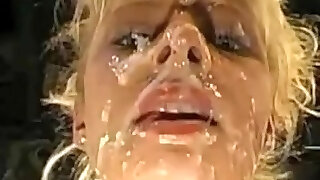 le joli visage de sarahs se fait gicler du sperme de l'éjaculation de masse par 30 explosions de balles