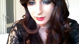 crossdresser tvrose assis à vouloir que vous suciez, léchiez et adoriez une bite et des couilles girly lisses