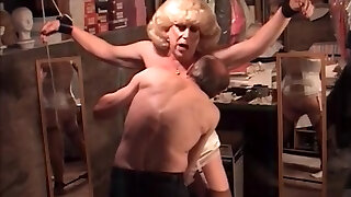 crossdresser en justaucorps cramoisi donne un assjob à horny domina melody enjoyment