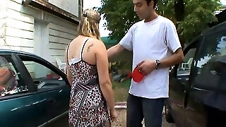 une milf blonde aux gros seins aime frapper à l'arrière après avoir fourni un tit-screwing