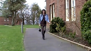 mooie crossdresser heerlijke gerokte billen loopt buiten