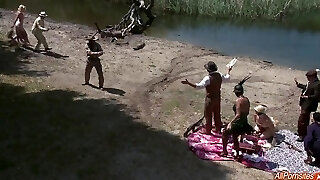 Outdoors group fuck-fest party with insatiable Natasha Marley and her friends