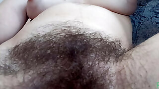 Never shaved HUGE fur covered cunt. Thick forest