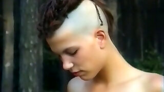 Lean and tall punk girl with two horny men in the forest