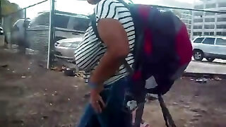 Gorda tetuda en la calle