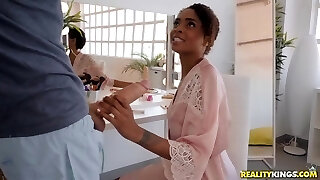Black stepmom with huge backside fucks and sucks big cock - Diamond Monroe