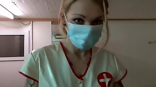infermiera bellezza con intrecciato coda di cavallo colpi e sborra un paziente