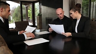 la donna d'affari di breasty recieves un duro colpo dal suo capo
