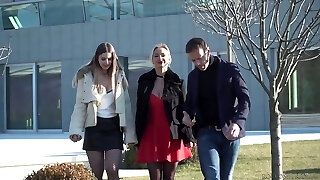 2 adolescenti mieli seducono un tizio esperto per un trio