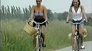 Two cute and fascinating brunette lesbians gobble cunts on the pink rag outdoors