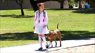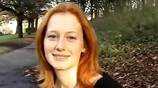 Redhead cutie heads outdoors only to play around with her private parts