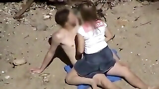 блондиночка милая езда ее бойфрендов beefstick на пляже