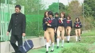 Cute brunette college girl in college uniform flashes her pussy on the stool