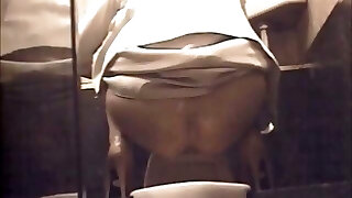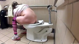 Old lady with a big ass goes pee in public rest room