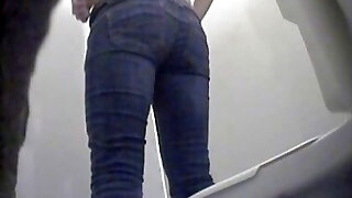 Milky pale skin caboose of a stranger girl filmed in the toilet