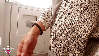 nippleringlover horny cougar pissing on public toilet in airplane flashing pierced pussy and extreme pierced nipples