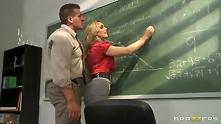 成熟加上大小的金发女郎Elize K.引诱和戳一个年轻的女孩
