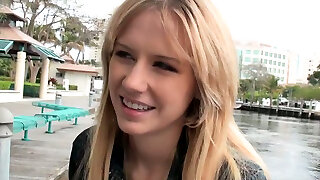 漂亮的白金金发让一个陌生人把他的手指在她的阴唇