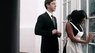 英俊的女仆黑色与可爱的流浪汉得到了boinked由所有者