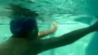 裸体主义者在游泳池获得水下拍摄