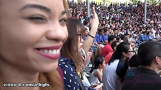 杰米Marleigh在杰米得到满足的长颈鹿的面对面给它们喂食-ATKGirlfriends